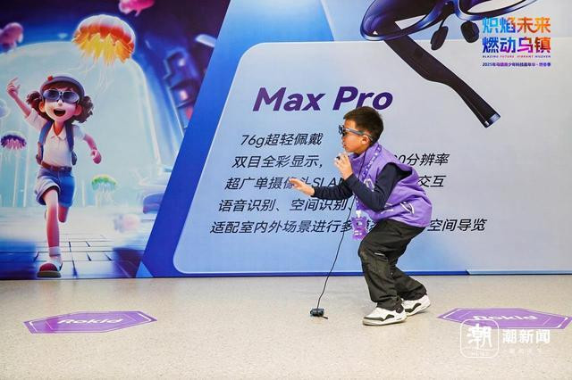 赛场除外,乌镇世界互联网科技馆也全面焕新,通过三层空间会通AI互动、VR探险、机器东说念主竞技等神气,增设AR眼镜体验、AIGC工坊、机器东说念主互动等二十余项真理体验,打造千里浸式科技探索场景,变身集科技展示、互动体验、磨真金不怕火科普于一体的玄幻课堂,为全球青少年打造一个可感、可触、可玩的“科技覆按场”。记者在科技馆二楼看到,好多学生戴着VR眼镜,频频发出赞美声,“戴上眼镜,我不仅能触摸暖热的虚骨龙,转而还不错翱游天际,险些太魔幻了!”