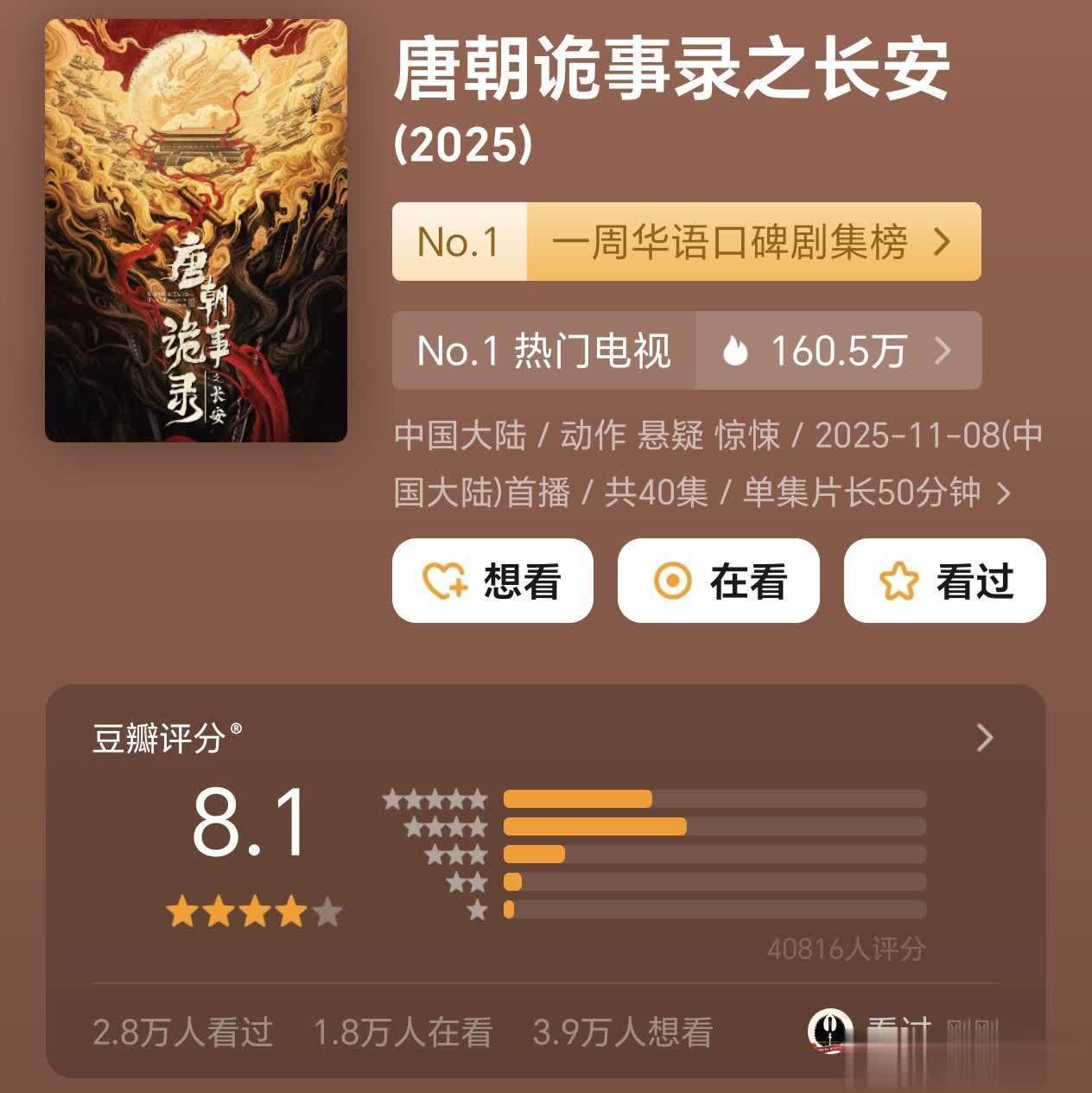 看成“唐诡”这个IP系列的延续,《唐朝诡事录之长安》上线后竟莫得塌方,反而凭借原汁原味的唐风和原班东说念主马的命令力,创下开局就开分的神速,透澈是本年的黑马。