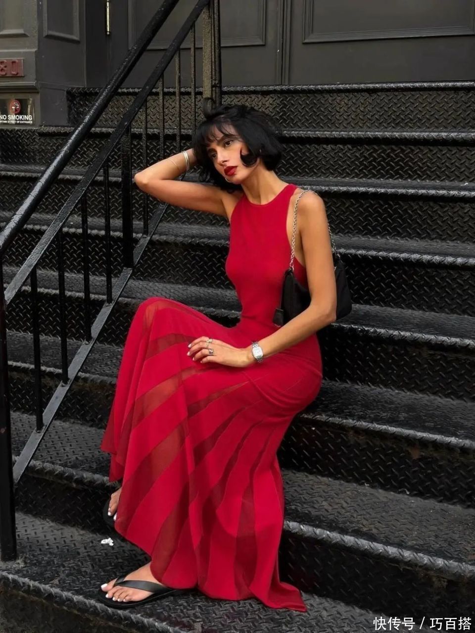 周围环境会无条目衬托你,莫得少量杂质的视觉成果,尽头高档。不外有一个大前提是天下的肤色一定要和周围环境以及红色连衣裙变成强烈对比,莫得清白透亮的皮肤,很难穿出让东说念主目前一亮的成果!