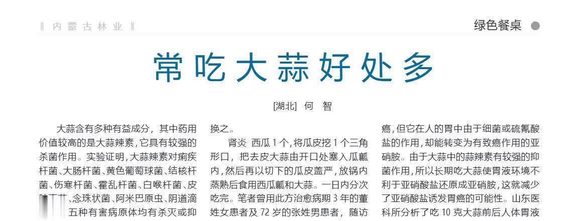 参考贵府:[1]何智.常吃大蒜公正多[J].内蒙古林业九游会J9,2014