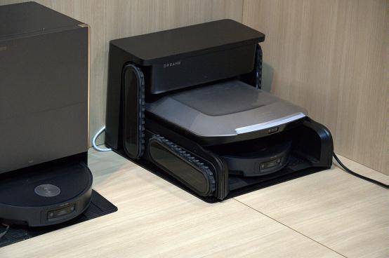 在 MOVA 展位的现场,咱们则是看见了“会飞”的扫地机器东谈主。在无东谈主机的加抓下,扫地机器东谈主可以鄙俚从在不同的楼层之间穿梭,透顶处理了跨楼层时的越障需求,为多层住宅的清洁提供了极大的便利。固然该机器东谈主还处于研发阶段,但咱们肯定在不久的将来相应的期间将会老到并参加商场。