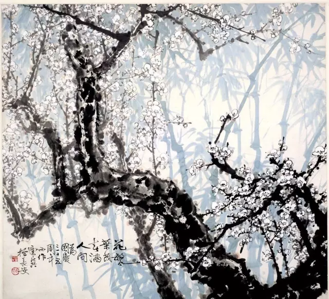 构图也“反着来”。别东谈主画梅爱留白,他偏把梅枝塞满画面,再留几根光溜溜的枝干“透气”。比如《梅花报春》,似锦压得枝端弯弯的,下面的留白却像雪地,冷暖一双比,梅花的耐寒劲儿就出来了。