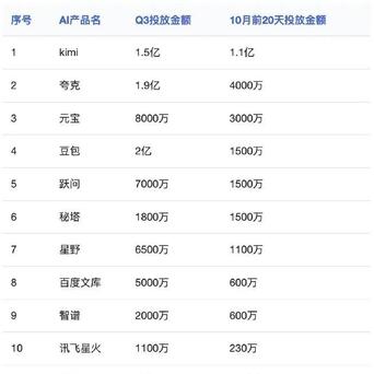 这个说法细则是夸张的,但其实也反应出了一些表象,而况从榜单来看,许多国产AI在投放上的金额如实很大,有些以致一个季度的投放金额皆过亿了。